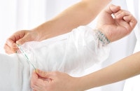 看護師さんと患者さんの快適をつくるシャワー専用品「末梢カテーテル保護カバー」です。
